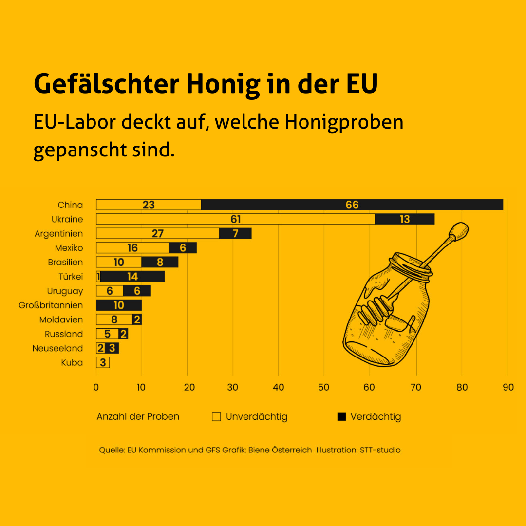 Im Auftrag der Europäische Kommission wurden in der Aktion "From Hives" importierte Honige auf ihre Zusammensetzung untersucht. Bei 46 Prozent der gezogenen Proben handelt es sich um eine Honigfälschung.