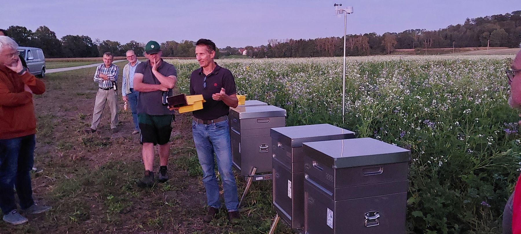 Am 2. Oktober 2023 versammelten sich Imker und Landwirte ein letztes Mal auf den beiden bienenfreundlichen Zwischenfrucht-Anbauversuchsflächen in Pucking und Kirchdorf am Inn. Gemeinsam begutachteten sie die Entwicklung der verschiedenen Anbauvarianten, die alle mit dem gleichen Saatgut angelegt wurden. Diese Besichtigung ermöglichte es ihnen, die Vorzüge und Herausforderungen der unterschiedlichen Anbaupraktiken sowohl aus ackerbaulicher, aber auch imkerlicher Sicht zu erörtern.